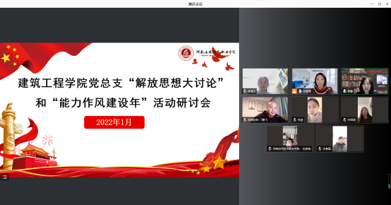 为进一步解放思想、抢抓机遇、深化改革、务实重干,以高度的思想自觉和行动自觉全面推进学院高质量发展,根据学校《koko体育官网“能力作风建设年”活动实施方案》的工作进程安排,2022年1月23日—25日建筑工程学院辅导员、工程管理教研室、建筑装饰设计教研室、建筑工程技术教研室通过线上会议分别召开解放思想大讨论暨“能力作风建设年”活动研讨会。会议由党总支书记马春燕主持。