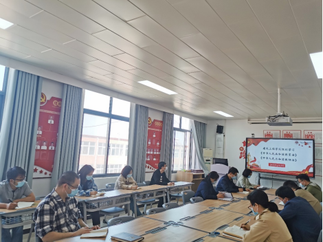 2022年4月19日下午,建筑工程学院党总支组织全体教师在办公楼516党员活动室进行《中华人民共和国教育法》和《中华人民共和国教师法》专题理论学习,旨在增强教师的法律观念和法律素质,加强师德师风建设。本次学习采取线上、线下相结合的方式,会议由建筑工程学院党总支书记马春燕主持。