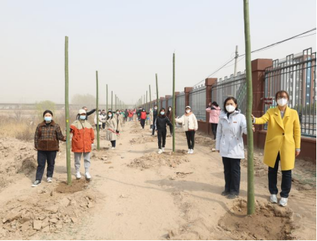 春风拂绿,植树现场一派热火朝天的劳动景象,党员干部们热情高涨、干劲十足,在党总支书记马春燕和院长张虎的带领下,大家来到植树点,三五成组,分工协作,一起挥锹铲土、运苗栽植、填坑夯苗、提桶浇水,每道工序都认真细致、一丝不苟,各环节都衔接有序、相互配合。在大家的共同努力下,一棵棵树苗顺利“安家落户”,迎风挺立, 每两人认领一颗树,寓意与树一同成长,并制作专属卡片挂在树上。马春燕强调,各位党员教师要以身作则、真抓实干、敢于担当,务实功、出实招、求实效,充分发挥党员先锋模范带头作用。