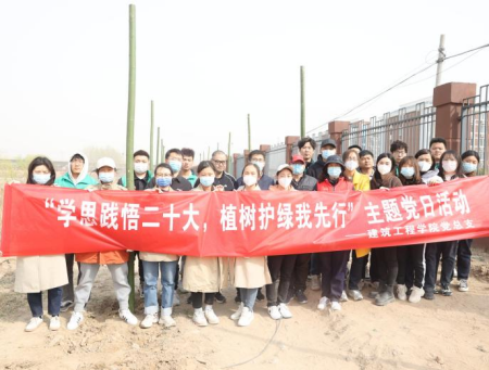 春回大地万物苏,植树添绿正当时。为深入贯彻落实党的二十大精神,践行“绿水青山就是金山银山”的发展理念,3月11日上午,在第45个植树节来临之际,建筑工程学院党总支组织20余名党员教师和10名入党积极分子在开封校区北院开展“学思践悟二十大,植树护绿我先行”主题党日活动,用实际行动践行绿色发展理念,为新校区建设增绿添彩。