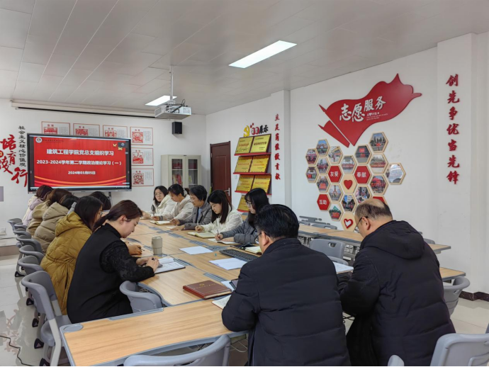2024年3月5日下午,建筑工程学院党总支在郑州校区办公楼516党员活动室(开封校区C202)组织开展政治理论学习活动。本次学习采取东西校区视频连线,线上、线下相结合的方式,会议由建筑工程学院党总支书记张虎主持,院长李勇及全体教职工参加。