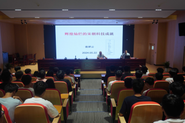 张祥云老师分别从宋朝科技概况及地位、宋朝科技成就之典型、非凡成就奠定及影响等方面展开讲座。讲座过程中,他引经据典,例理结合,时而回溯历史人物及其事迹,时而联系现实,讲座深入浅出,通俗易懂,为师生开启了一场穿越千年的文化之旅。