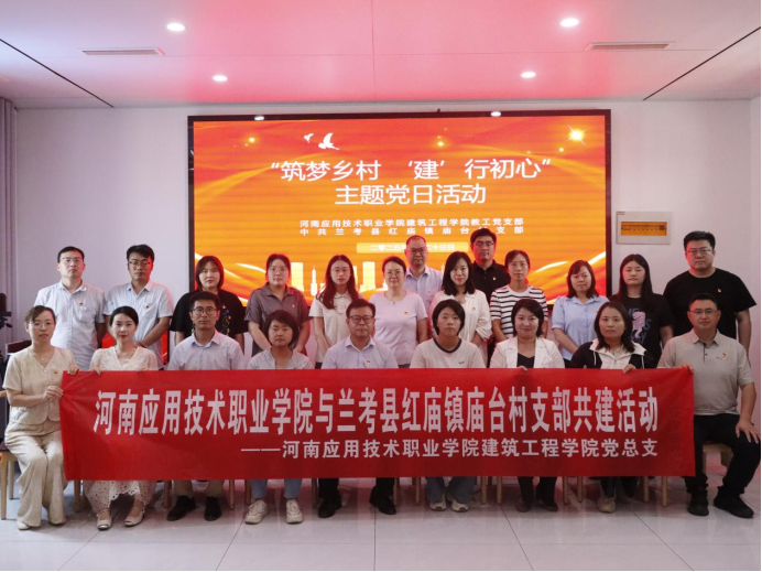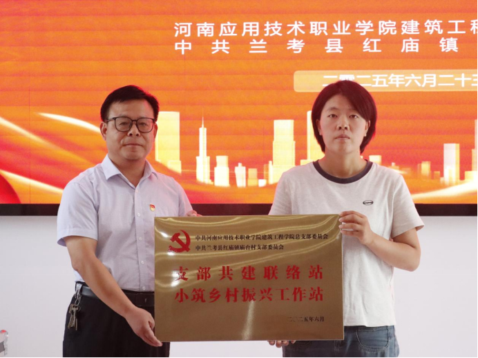 为深入贯彻落实党的二十大精神,推动基层党建与乡村振兴深度融合,6月23日上午,建筑工程学院党总支与兰考县红庙镇庙台村党支部在红庙镇人民政府党建活动室举行党建共建授牌仪式。会议由红庙镇庙台村驻村第一书记任旭凯主持,教工党支部书记、院长李勇、党总支组织委员王莹及教工党支部全体党员教师,红庙镇组织统战委员王晓静、红庙镇庙台村村支书任勤勤参加仪式。