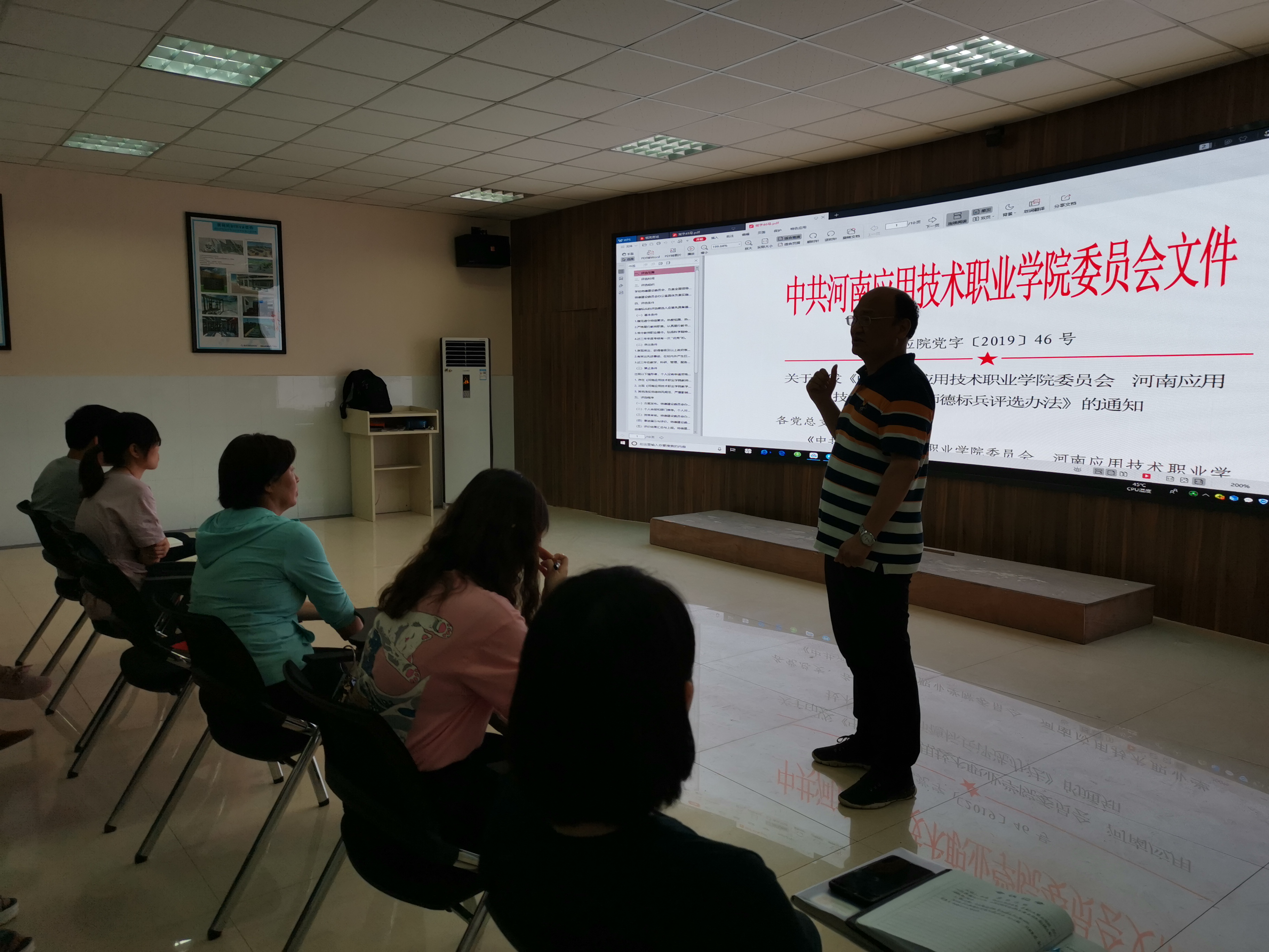 最后,张虎院长指出,我们老师要认真领会这几个文件的精神内涵。因为教师的思想政治素质和职业道德水平的高低直接关系到教育教学质量的好坏。我们教师要把“言教”和“身教”有机结合起来,用高尚的师表形象去感染学生,教育学生,真正成为学生灵魂的工程师。