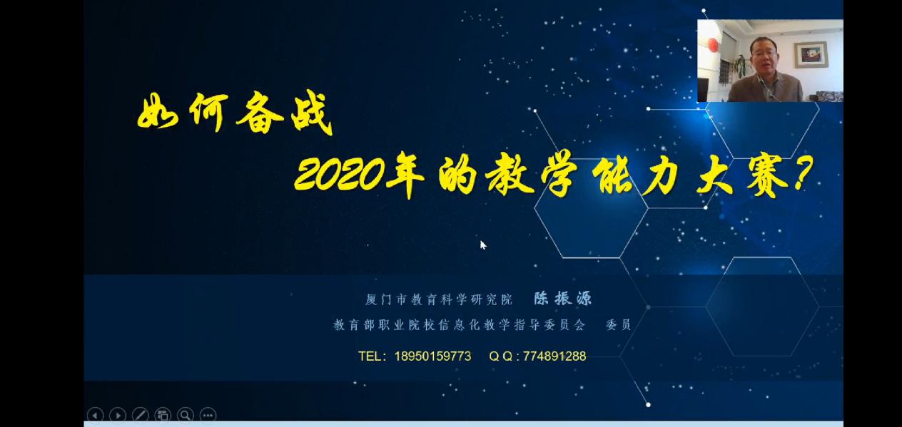 第一天,由厦门市教育科学研究院职教室原主任陈振源从新政解读、释疑解惑,直击大赛评委要素,参赛备赛锦囊三个方面向大家进行了讲解。第二天,淮安信息职业技术学院副教授刘万辉主要从获奖的路径、宏观教学理念的选择、教学能力比赛作品特征、教学环境的构建、比赛的选题、教学过程的设计等六个方面进行了讲解。