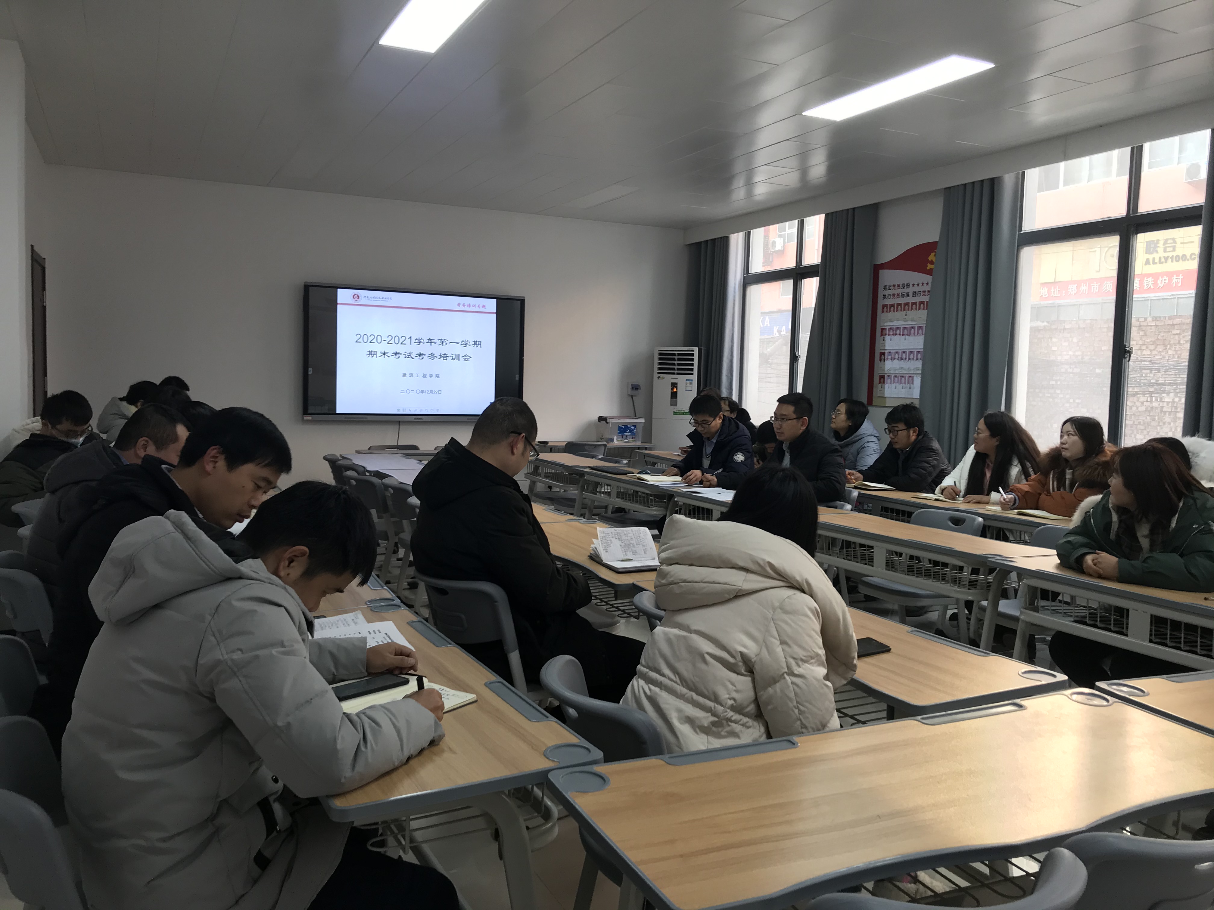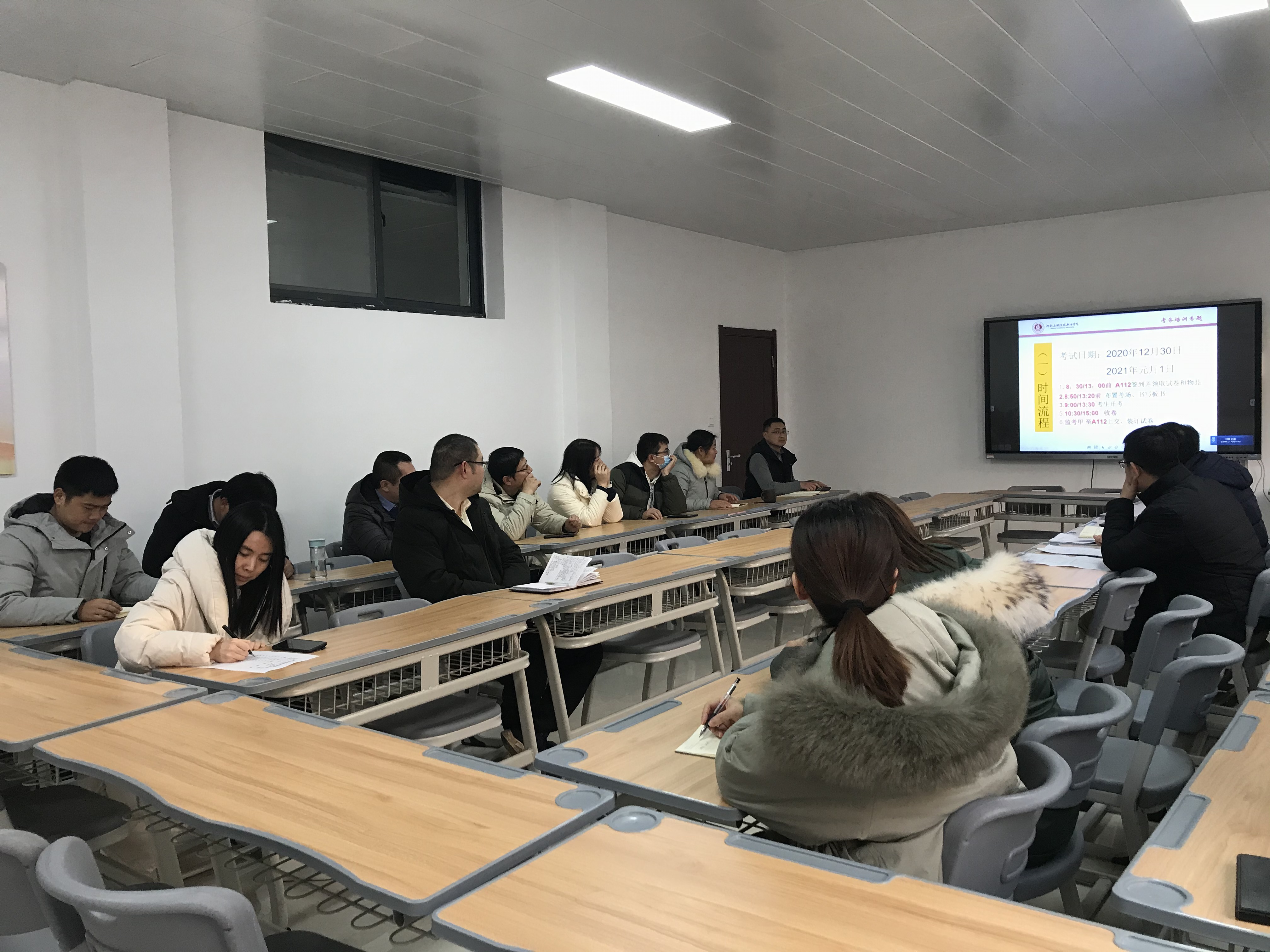首先,副院长娄焕安排部署了2020-2021学年第一学期期末考试工作,向建筑工程学院全体教师及基础教学部支援教师进行了考前培训,强调了考务纪律,明确了监考、考务等岗位的职责,确保期末考试工作安全、平稳、顺利的完成。