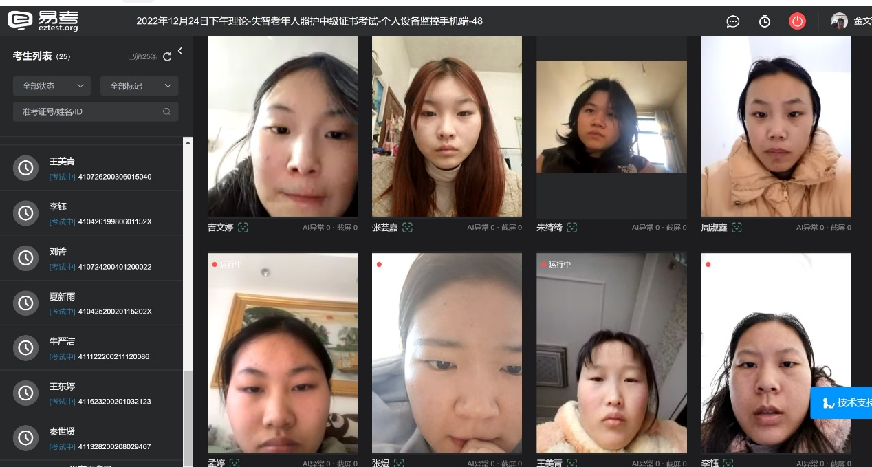 2022年12月24日,河南应用技术职业学院护理学院负责承接的教育部“1+X”失智老年人照护职业技能等级证书(中级)考试以在线考核的方式顺利完成。本次考试我校共有100名护理、老年保健与管理专业的学生参加。考试借助官方网络平台,在校领导的统一指导下、各部门的密切配合下、校内外督导员的严格监督下、监考教师的认真考评中圆满完成。