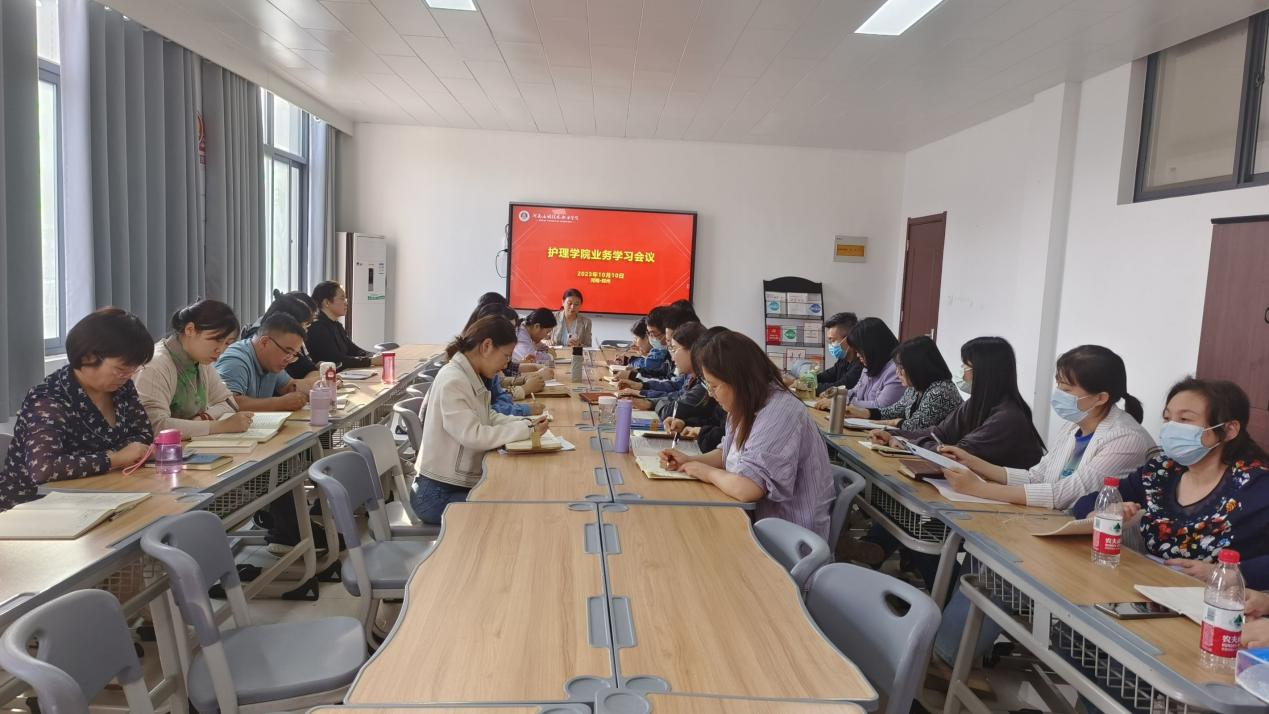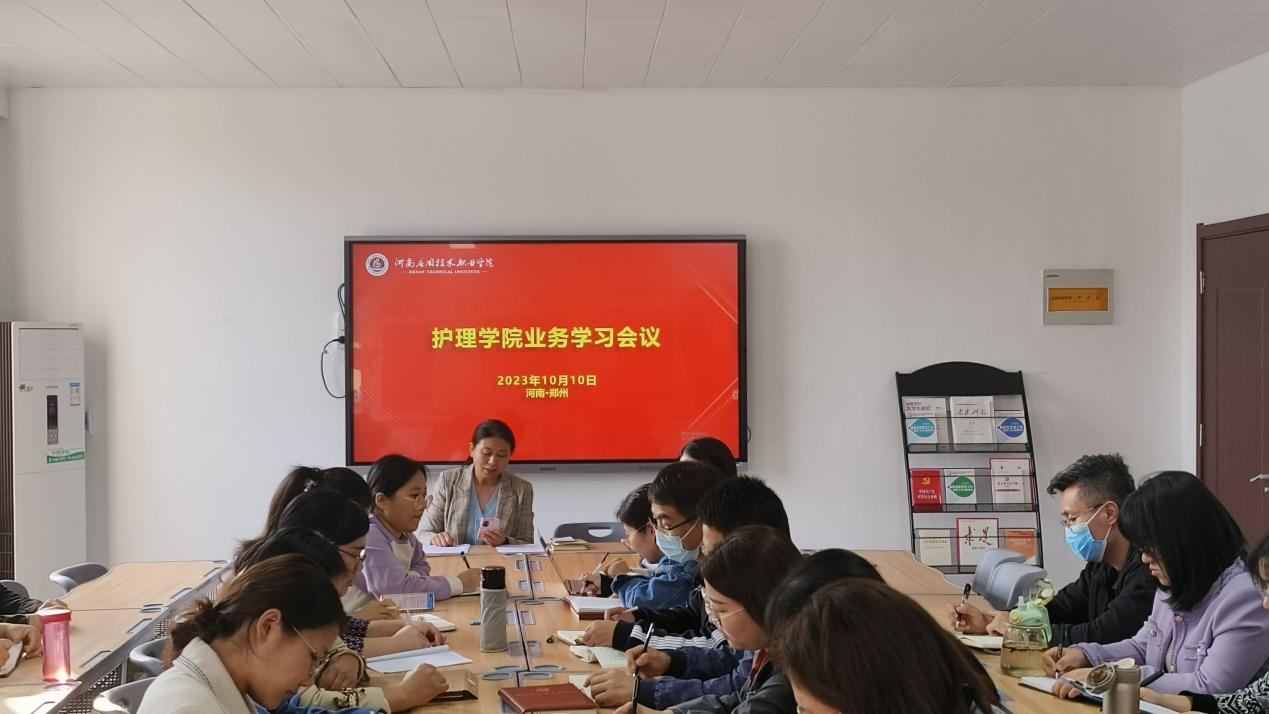 根据学校有关安排,2023年10月10日,护理学院组织全体专兼职教师在A515党员活动室进行业务学习活动,集中学习了“习近平致信全国优秀教师代表强调大力弘扬教育家精神,为强国建设民族复兴伟业作出新的更大贡献,向全国广大教师和教育工作者致以节日问候和诚挚祝福”以及《高等学校实验室消防安全管理规范》,对教育部公开曝光第十三批7起违反教师职业行为十项准则典型案例进行了警示教育学习,并组织研讨《河南应用技术职业学院教材管理办法(2023年修订版)征求意见稿》。会议由护理学院院长王风云主持。
