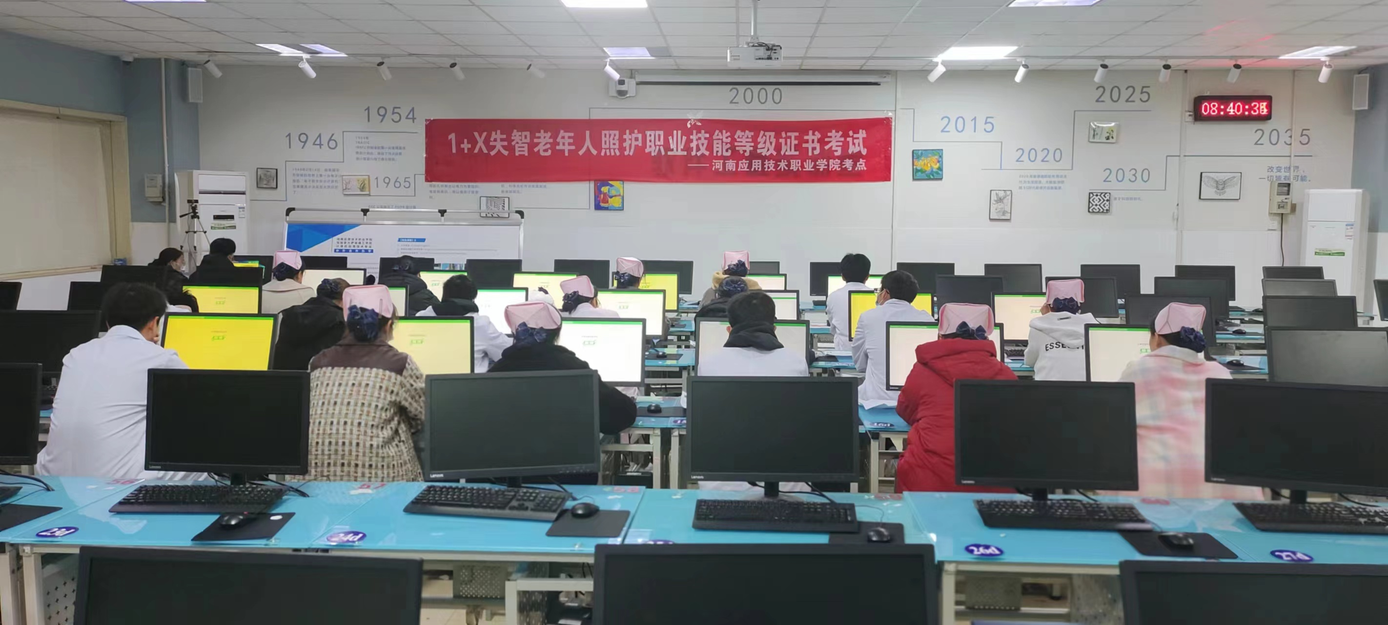 2023年12月9日,河南应用技术职业学院护理学院负责承接的教育部“1+X”失智老年人照护职业技能等级证书考试在我校实训中心顺利举行。经过认真选拔、精心组织培训、严格考核考评等工作,学院顺利组织护理专业共19名学生参加“1+X”失智老年人照护职业技能等级证书考试。