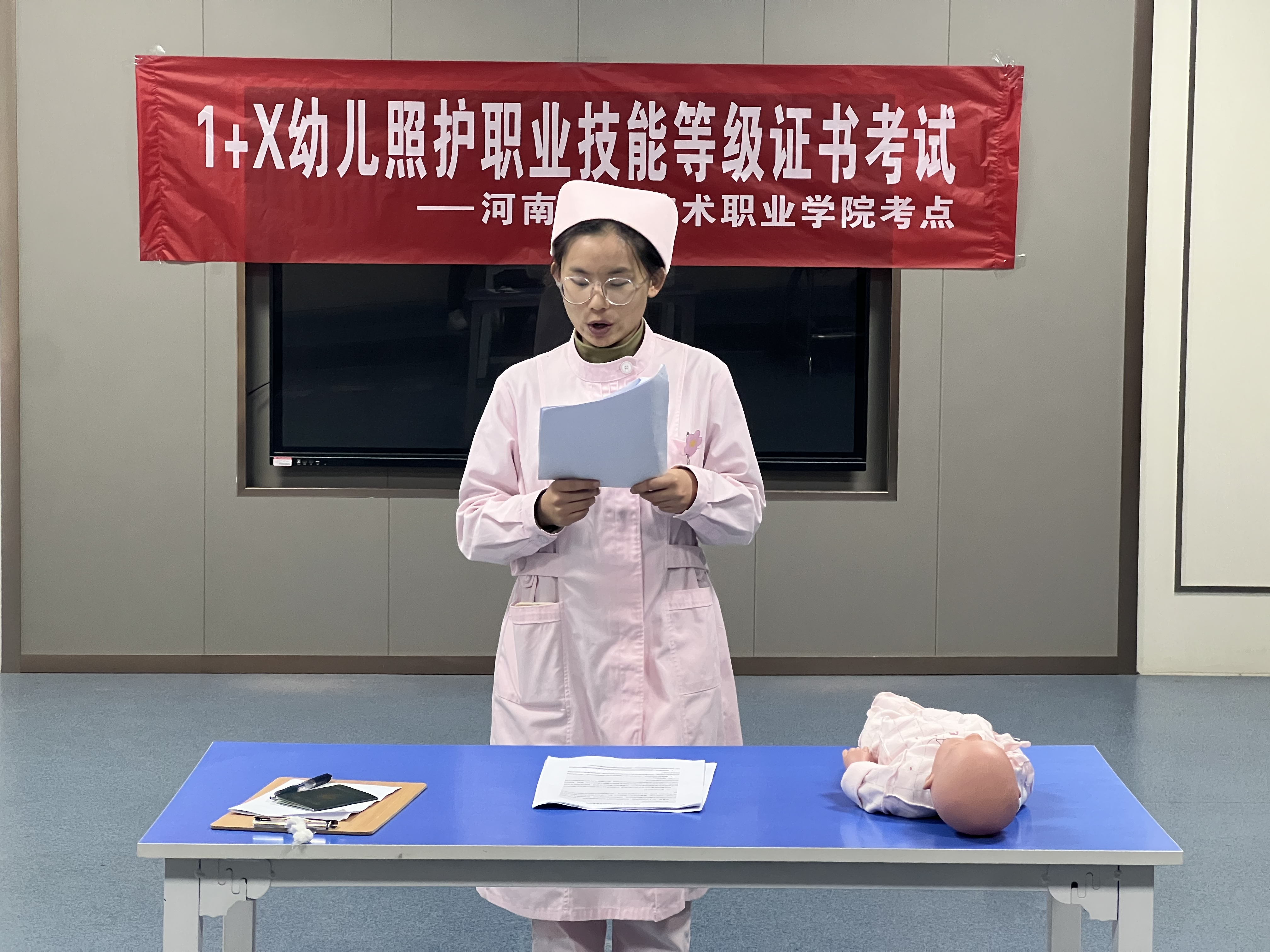 为贯彻落实《国家职业教育改革实施方案》要求,做好1+X证书制度试点工作,也为进一步探索幼儿照护等级技能人才培养模式,加大力度培养社会需要的幼儿照护人才,2023年12月10日,河南应用技术职业学院护理学院组织开展1+X幼儿照护(高级)职业技能等级证书考试。本次考试共有100名校内考生和18名社会考生参加。考前准备齐全,考务工作规范,考场组织有序。此次考试旨在提高幼儿照护人员的专业素质,突破传统的照护方式,为幼儿的健康成长保驾护航。