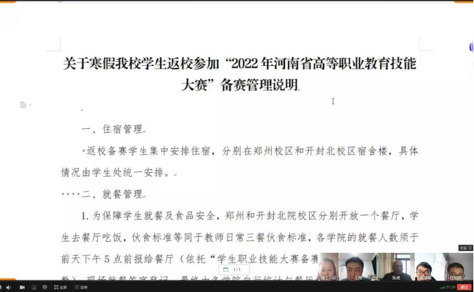为积极备战河南省高等职业教育技能大赛,提振备战信心,争取再创佳绩。2023年2月2日上午,建筑工程学院召开关于寒假我校学生返校参加“河南省高等职业教育技能大赛”备赛会议,院长张虎、副院长任旭凯及各项目负责人参加了会议。
