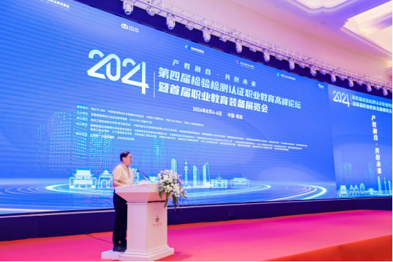 为进一步落实中共中央、国务院等部门颁发的《关于推动现代职业教育高质量发展的意见》《关于深化现代职业教育体系建设改革的意见》《职业教育产教融合赋能提升动实施方案(2023—2025年)》有关文件要求,推进国家质量基础设施领域人才高质量发展,促进检验检测认证行业(TIC)与职业教育的深度融合,2024年8月6日,建筑工程学院派教师胡敏贤赴江苏南京参加“第四届检验检测认证职业教育高峰论坛暨首届职业教育装备展览会”。