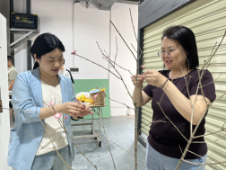 此外,项目创新性地融入艺术设计环节,《山水映窗》巧妙运用抹灰层次变化,在墙面营造出传统花窗与绘图意境。在墙面营造出传统花窗与日照金山的意境。“手绘墙面过程中,要同时保证抹灰墙面的整洁性,要能及时应对突发情况,重新调整抹灰面。”团队成员谭舒文说道。学院建筑工程技术教研室主任冯娇伟强调:"职业教育不仅要培养技能,更要激发创造力。这个项目也是我们推行'岗课赛证'融通改革的案例,很大程度上激发学生创新动手能力。”