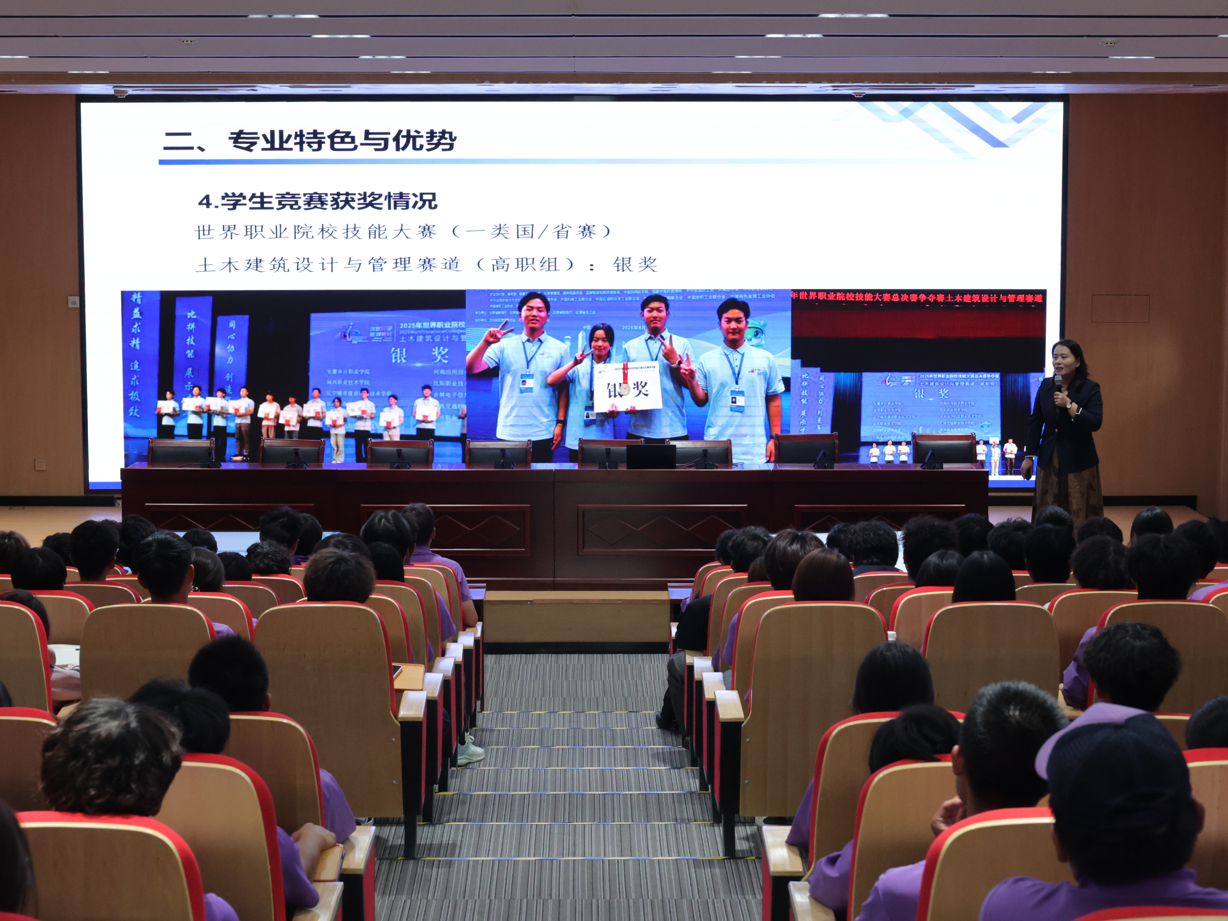 鞠杰老师以“项目经济守门人”为定位,通过展示地标建筑成本案例,解析“计量精准性-计价合理性-控制系统性”能力链,并结合省级技能竞赛获奖成果,强化学生技术经济双优特质。