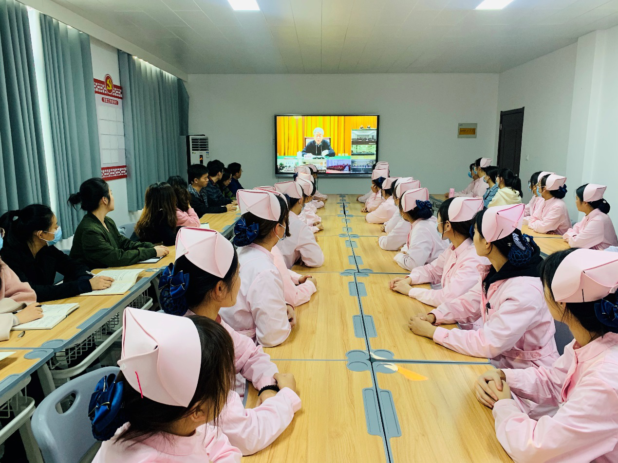 为深入学习贯彻党的十九届五中全会精神,护理学院党总支于2020年11月12日下午14:30组织无课的师生48人到办公楼515党员活动室认真收看教育部部长陈宝生11日下午宣讲报告会视频。