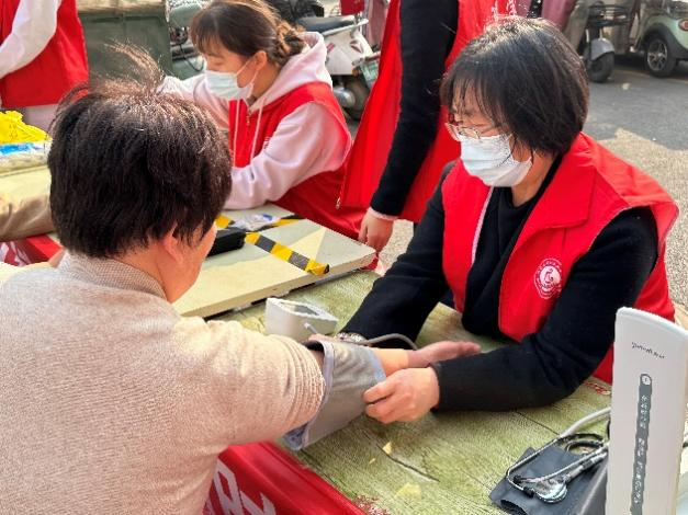 2024年3月14日,护理学院党员教师和学生志愿者走进郑州市高新区紫檀社区,开展义诊服务,将专业的医疗知识和服务送到社区居民身边,解决居民日常生活中遇到的健康问题。