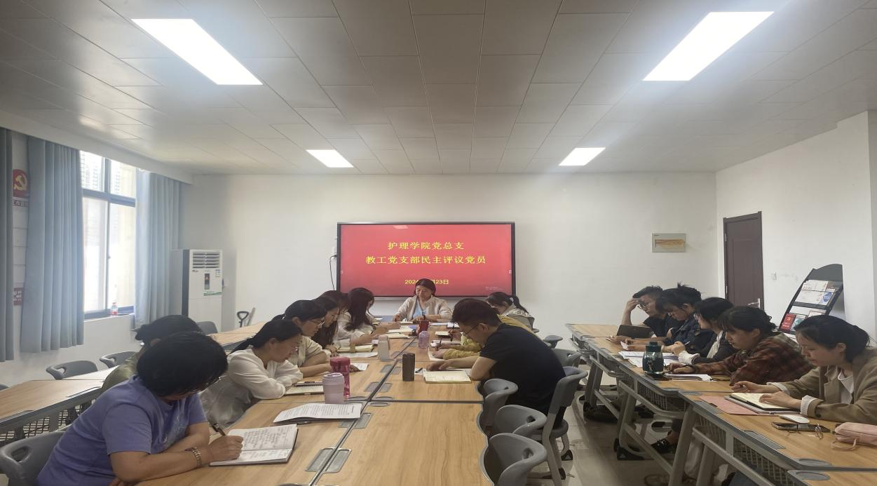 护理学院党总支教工党支部共20名党员教师。会议由护理学院党总支教工党支部书记王风云主持。首先,每位党员教师对照党章党规将一年来个人的理想信念、组织观念、履行党员义务、工作作风等方面进行深刻党性分析和自我评议。护理学院党总支教工党支部每位党员都能够坚定不移地走中国特色社会主义道路,自觉贯彻执行党的基本路线、基本方针和基本政策,坚决执行党的决议,严守党纪和国家法律法规,在政治上同党中央保持高度一致。能够正确处理国家、集体和个人利益之间的关系,坚持党的宗旨,坚持立德树人、关心学生、廉洁奉公,不断提升个人专业技术水平,致力于培养德智体美劳全面发展的高素质技术技能型医药卫生人才。随后,组织教工党支部全体党员进行民主评议党员及党支部。