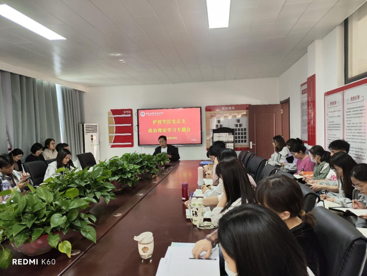 根据学校安排,2025年3月25日下午,护理学院党总支组织全体教职工在A515召开政治理论学习会议,本次会议由护理学院党总支书记杨明杰主持,旨在提升教职工的政治理论素养,推动学院在教育教学中更好地贯彻落实党的方针政策。