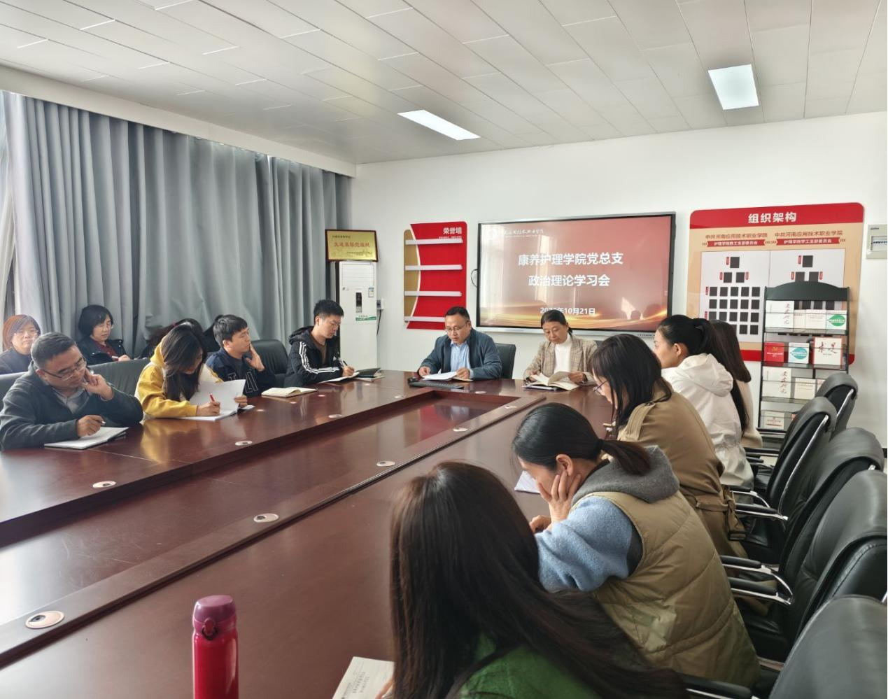 与会教职工围绕学习内容展开热烈讨论。老年保健与管理教研室主任柳超表示:“中国式现代化为康养产业指明了方向,我们将优化‘医养结合’课程体系,培养能应对人口老龄化挑战的复合型人才。”青年教师薛文秀提到:“通过学习,我深刻认识到科研工作要紧密对接国家战略,未来将聚焦老年健康管理领域开展攻关。”