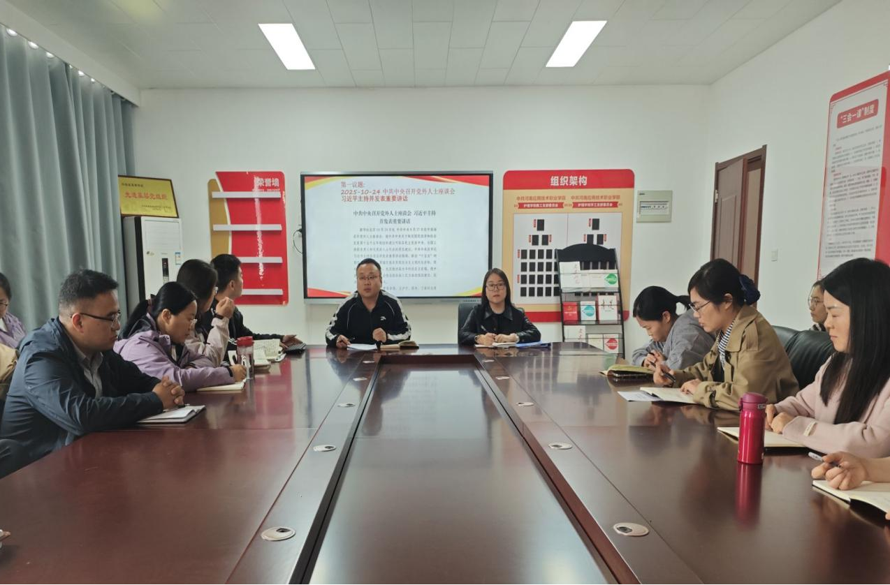 会议首先聚焦2025年10月24日中共中央召开的党外人士座谈会。张忠勇领学习近平总书记重要讲话,强调“十五五”时期是基本实现社会主义现代化的关键阶段,需锚定高质量发展、科技自立自强、共同富裕三大目标。他结合学院实际指出,全体教职工需深刻把握“统筹发展和安全”的战略要求,将“健康中国”战略融入教学科研。