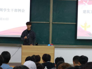 接下来,主席团成员以及各部门部长总结近期工作,他们首先肯定了同学们的工作作风和工作态度,同时要求以后的工作要有质量的完成,各部门之间要加紧联系,相互了解,并提出未来的工作规划,希望同学们能够提高服务意识,发挥主人翁精神,携手共建更加美好的建工大家庭!