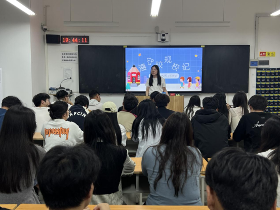 “遵守校规校纪 共建和谐校园”主题班会也有序开展。老师们带领学生逐条学习校规校纪,结合校园生活中的正反实例,让同学们深刻认识到遵守校规校纪对个人成长和校园秩序的重要性。同学们踊跃发言,承诺会从自身做起,以实际行动维护校园的和谐与稳定。