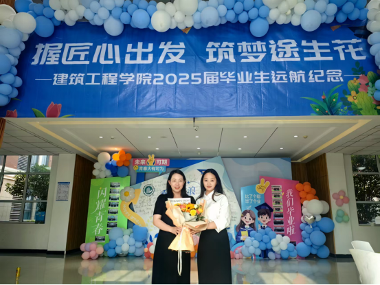 学院为毕业生们准备了特别的互动环节。毕业生们与昔日的任课老师和辅导员老师围坐在一起,畅谈在校时光的点点滴滴。老师们回忆着学生们在课堂上的精彩表现、在实验室里的专注模样,为他们如今的成长感到无比欣慰;同时,也为毕业生们送上了真挚的祝福与嘱托,希望他们在未来的工作中能够秉持匠心精神,在建筑领域深耕细作,为行业发展贡献力量。毕业生们则向老师表达了深深的感激之情,感谢学院的悉心培养与老师的谆谆教诲。