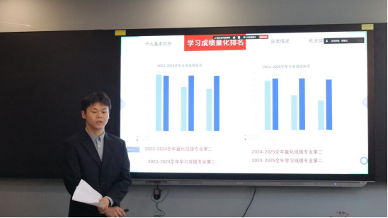 答辩伊始,学工办主任史真向各位候选同学详细讲解了学院和学校国家奖学金候选人的评选标准。学院严格按照国家奖学金评选标准,经班级推荐、年级初审、学院复核,以学业成绩、科研创新、社会实践多维度标准推荐候选人,确保评选流程公开透明。答辩过程中,候选人围绕专业学习成效、学科竞赛突破、科研项目参与、志愿服务实践等方向,系统梳理个人成长脉络与成果。评审小组本着公平、公正、公开的原则,对每位候选学生的汇报进行了细致点评,并围绕专业知识应用、科研创新思路、未来发展规划等方面提出针对性问题。