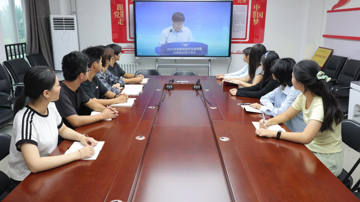在启动仪式环节,学院组织师生集中观看了“2025年国家网络安全宣传周河南省校园日活动”直播,引导大家深刻认识网络安全的重要性。随后,通过观看公安部刑侦局联合央视频开展的“2025年秋季学期大中小学生反诈大讲堂”,通过真实案例剖析提升了师生防范网络诈骗的意识和能力。