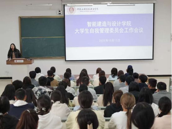 2025年10月13日,koko体育官网2025级大学生自我监督自我管理委员会于A102教室组织召开。本次会议由学工办主任史真主持,全体大自委成员,2025级班长及生活委员参与,会议内容旨在明确学生宿舍管理标准,增强新生寝室长的责任与安全意识,共同营造一个整洁、安全、和谐、向上的宿舍环境,为新生顺利开启大学生活保驾护航。
