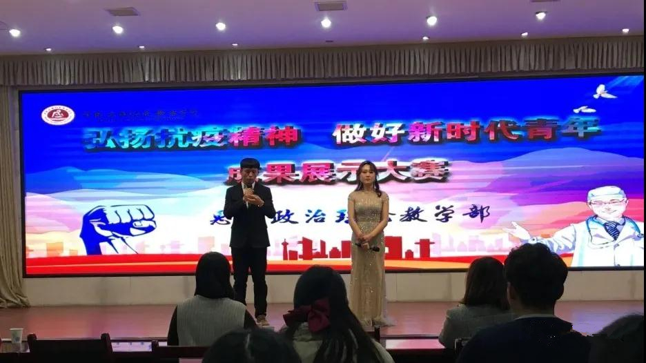 比赛开始前,主持人一一介绍了参加本次比赛的老师及评委,同时也分别介绍了比赛规则和评分标准。本次比赛全校共有10支参赛队伍入围决赛,展示形式丰富多彩,涵盖内容广泛,涉及疫情期间的“抗疫英雄”感人故事,“疫情期间身边的好人好事”,“歌颂抗疫期间普通百姓的抗疫过程”等多方面内容。参赛团队围绕大赛主题,通过真实贴切的视角、精湛的表演,给各位评委老师以及现场观众留下了深刻的印象,博得现场阵阵掌声。护理学院参赛作品《逆行》,以朗诵加表演的形式,生动形象地展现了疫情期间医生、志愿者、普通百姓间感人至深的抗疫故事。最终,经过激烈的竞争,以及评委们严格评审,作品《逆行》荣获二等奖。