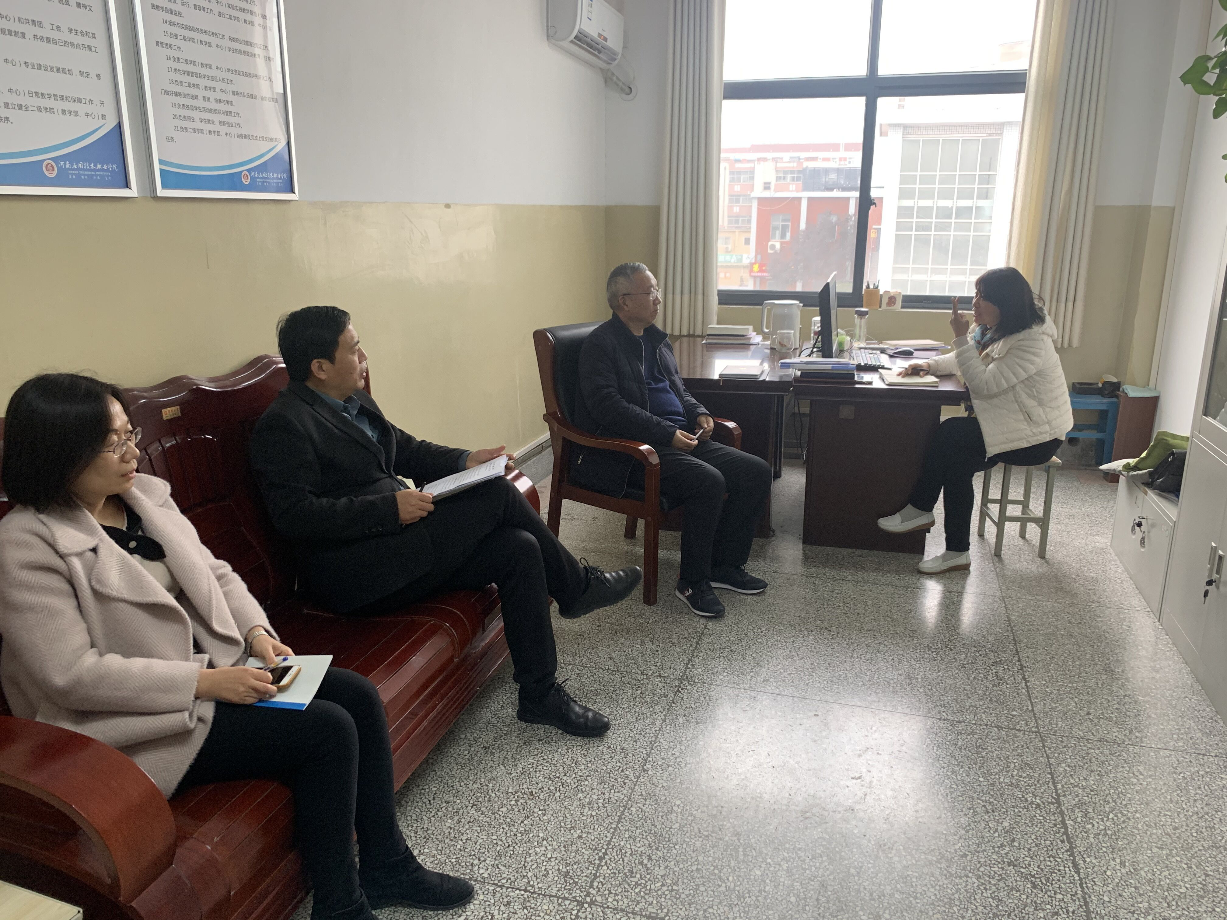 为进一步密切党群干群关系,切实加强基层基础工作,畅通师生意见反映渠道,提高学校领导班子科学民主决策和管理服务水平,促进各项工作科学、规范、持续、健康发展,2020年12月3日,我校党委副书记朱东方到我院指导调研工作。护理学院院长王风云、党总支书记杨明杰、副院长陈永惠参与调研。