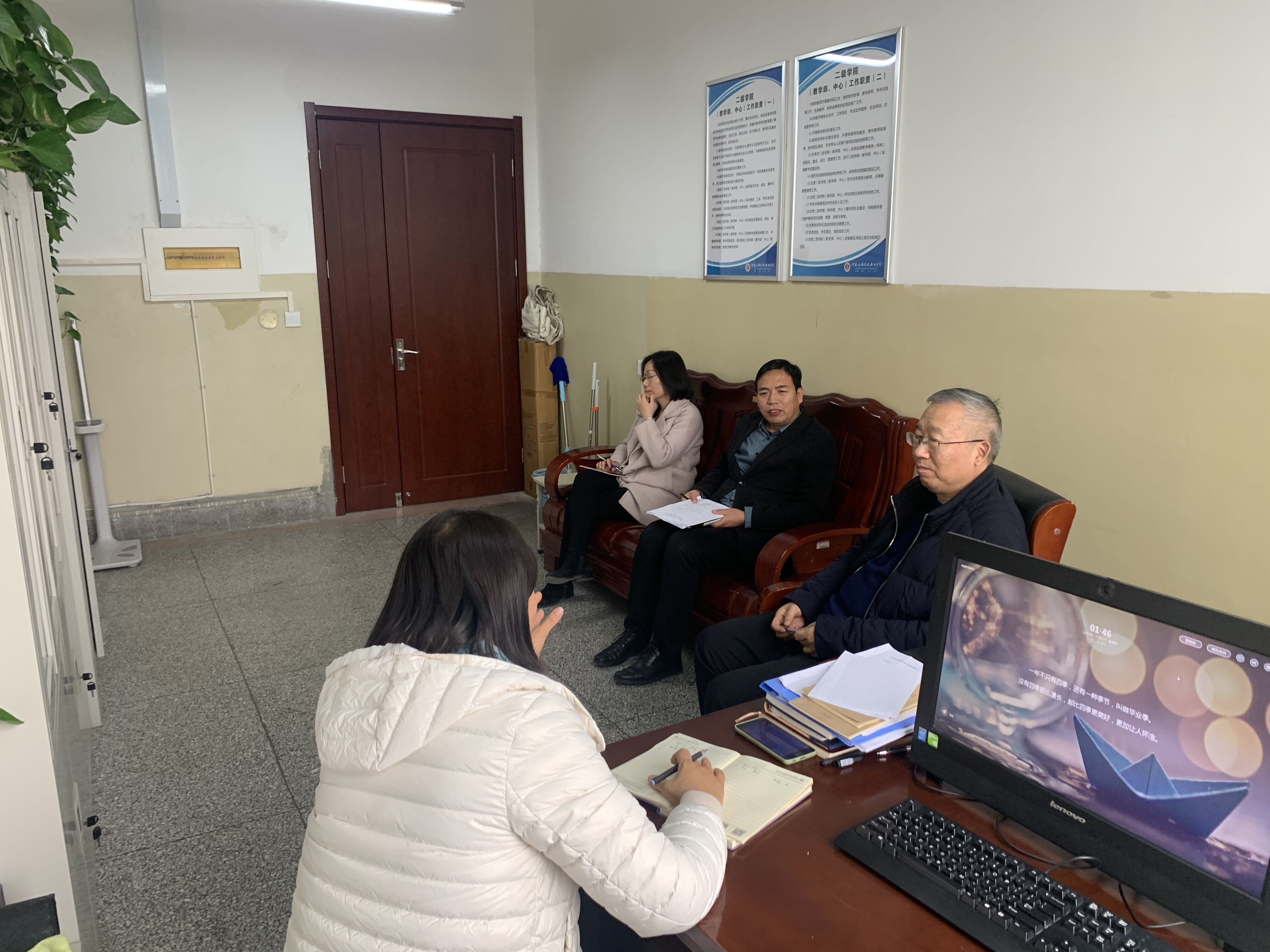 在听取学院汇报后,朱书记充分肯定了我院在教学改革、人才培养、学生管理、党建、就业等方面工作,表示学院为推动学校的全面发展做出了积极贡献。