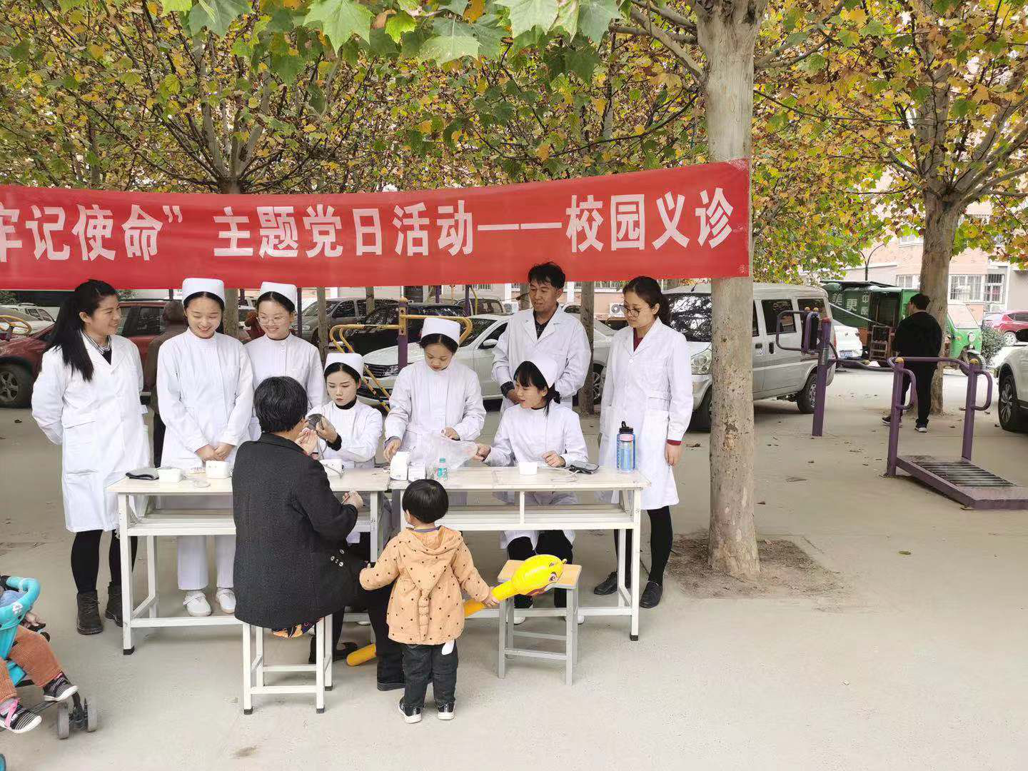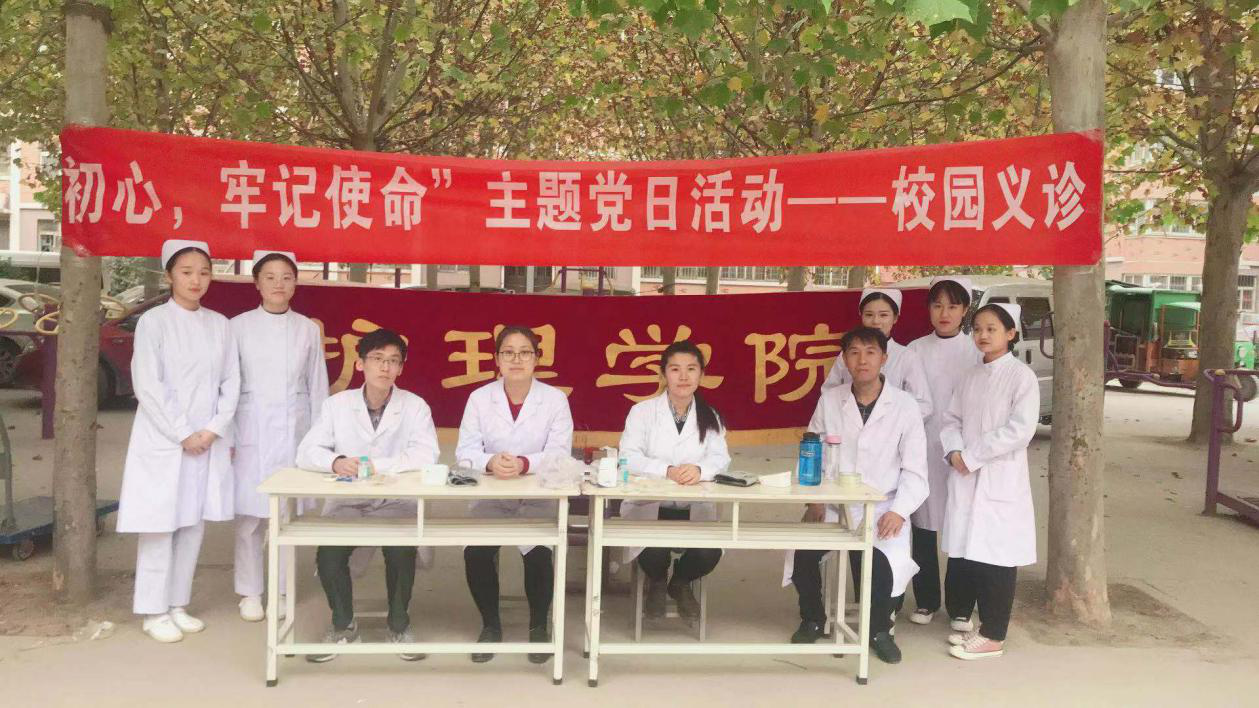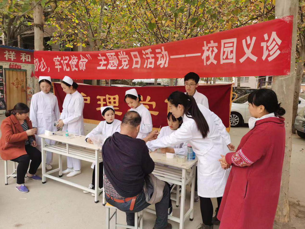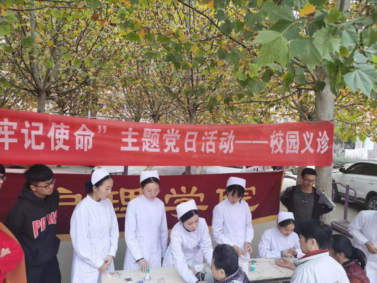 根据我校“不忘初心、牢记使命”主题教育工作部署,2019年11月12日下午,护理学院走出校门,在校园附近的二化小区开展了“不忘初心、牢记使命”主题党日校园义诊活动。参加活动的有李悦临老师、董莹莹老师、郑伟老师、王金库老师以及护理学院的学生。