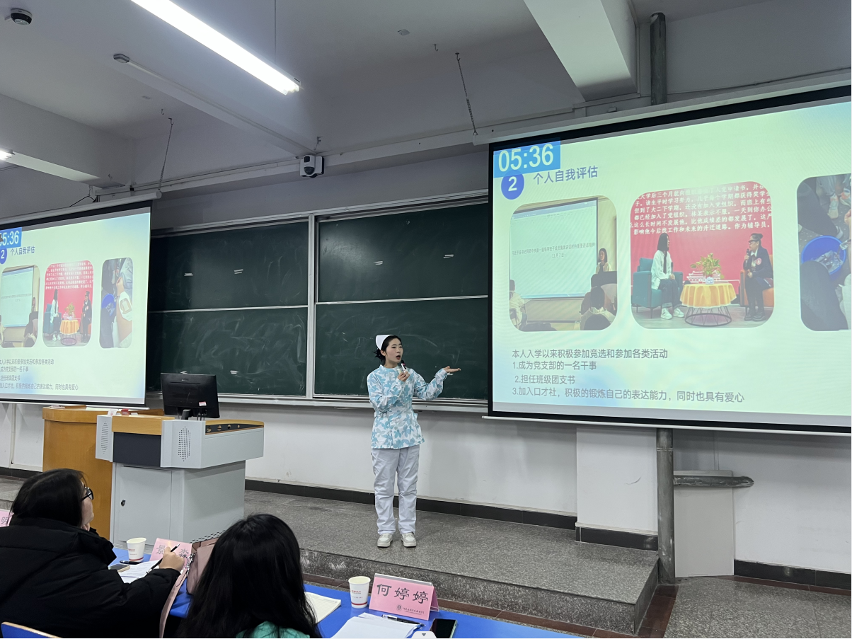 比赛期间,参赛选手们通过PPT进行精彩演讲,分别从职业目标、行动成果、目标契合度等方面,全面展示自己的职业规划。他们言辞流利地讲述自己过往历程,未来规划和职业目标。评委老师们对每一位选手的规划都进行细致入微的点评,不仅指出选手存在的不足,并对选手存在的问题提出合理建议。最后由张何林院长对于本次比赛进行总结,张院长指出本次活动中选手们的展示丰富多彩,风格各异,充分展示了护理学子良好的综合素质和过硬的专业本领,希望其他同学也要积极规划自己的职业生涯。