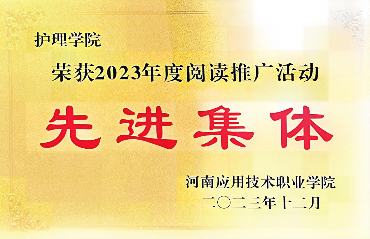 为了深入贯彻落实党的二十大提出的“传承中华优秀传统文化,深化全民阅读活动”的决策部署,护理学院师生积极参与我校图书馆于2023年4月—11月开展的阅读推广系列活动,并荣获2023年度阅读推广活动“先进集体”荣誉称号。