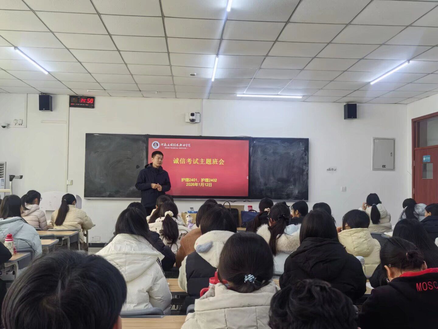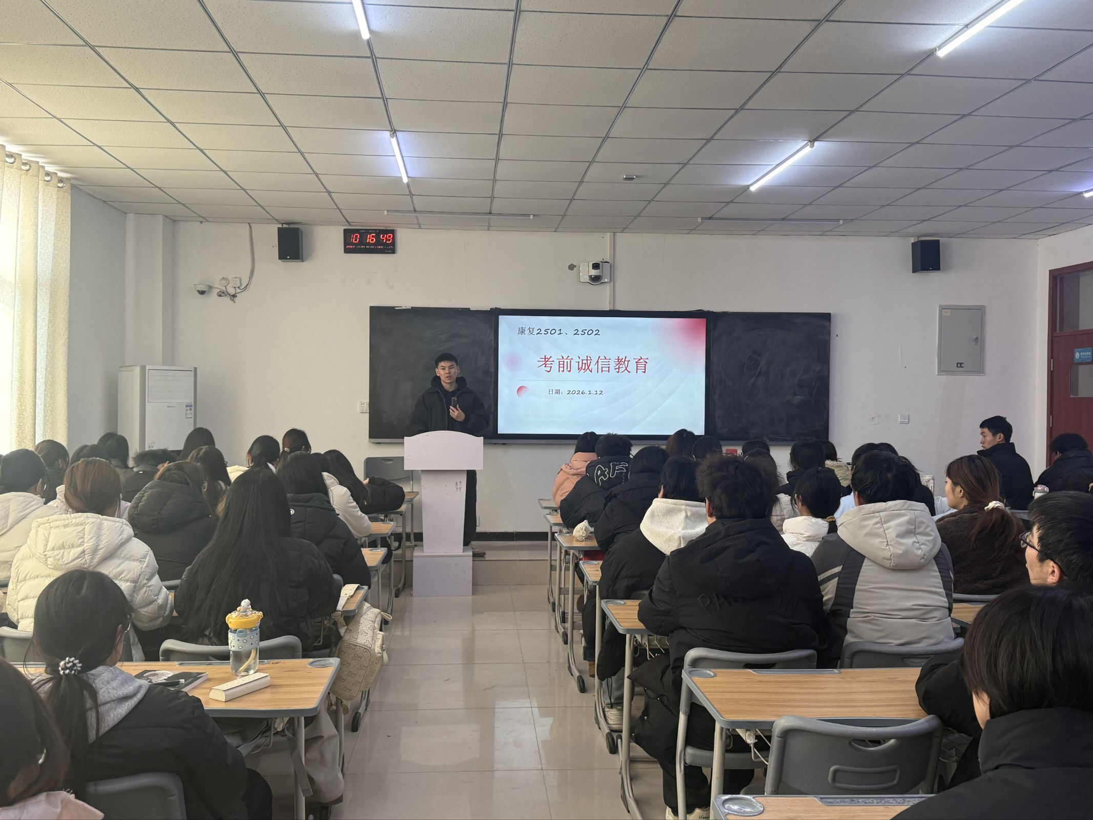 此外,不少辅导员结合专业特色延伸教育内容,引导学生将诚信品质融入日常学习与生活。有的班级通过观看诚信主题短片、诵读诚信名言警句等形式,营造浓厚的诚信文化氛围;有的班级邀请成绩优异的学生分享高效备考方法,鼓励大家通过勤奋努力取得理想成绩,而非投机取巧。班会现场氛围严肃而热烈,同学们纷纷表示,将以诚信态度对待期末考试,用真实成绩检验学习成果,共同维护公平公正的考试环境。