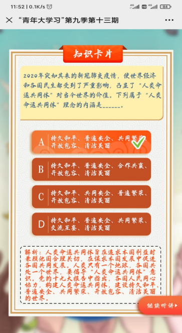 2020年9月24日-28日建筑工程学院团总支组织2018、2019级学生参与并完成了第九季第十三期青年大学习网上学习和答题活动。