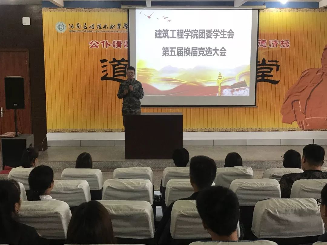 2018年9月20日中午12:30,建筑工程学院团学会第五届换届大会在B楼二楼学术报告厅进行竞选。建筑工程学院党总支书记马春燕老师与团总支书记刘亚娟老师主持了大会,