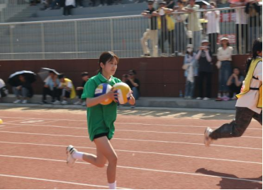 手中的三个排球承载着队伍满满的希冀,被同学们拥入怀里,又小心翼翼地在终点传递。有时球顽皮地从手中滚落,立马有同学大步冲向前,帮忙拾起那象征着集体力量的篮球,继续前行。一个完美的弧线和急转弯,凝聚着大家的希望!