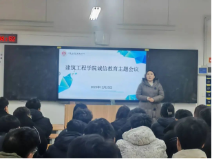为了增强学生诚信考试的意识,培养学生诚信考试的良好品质,进一步落实和弘扬脚踏实地、求真明理的精神,在学院营造尊师重道的学风。2023年12月25日—26日,建筑工程学院组织召开诚信考试主题班会。