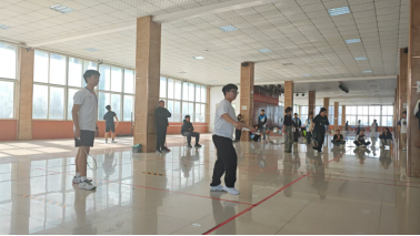 运动会上,排球在空中划出优美弧线,羽毛球如轻盈的鸟儿来回飞舞。