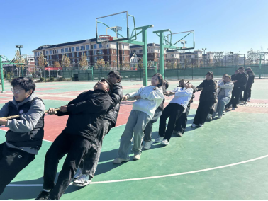 拔河比赛现场更是紧张刺激。双方队员紧紧握住绳子,脚蹬地面,身体后倾,大家毫不退缩,凭借着顽强的毅力和强大的团队凝聚力,最终一举夺冠。