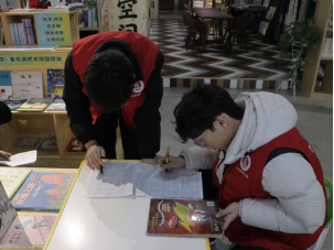 活动当天,志愿者们早早来到图书馆,接受了基础的培训后,便迅速投入到各自的岗位中。有的在书架间整理书籍;有的则在阅读区为读者提供引导和帮助。在书架间,志愿者们仔细地整理书籍,确保每一本书都能被准确地归位,方便读者查找。在借阅处,志愿者们耐心地解答读者的问题,帮助他们快速找到所需的书籍。在阅读区,志愿者们认真整理桌面卫生,为读者营造一个舒适的阅读环境。