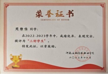 2023年12月,获得河南应用职业技术学院2022年-2023年度先进个人