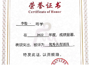 2023年08月,获得koko体育官网2022年度优秀共青团员