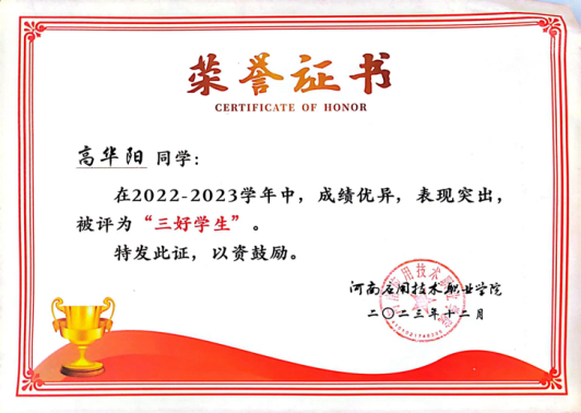 高华阳,男,汉族,中共预备党员,koko体育官网建筑工程学院2022级工程造价1班。在校期间担任纪检部干事,曾荣获koko体育官网“三好学生”、“军训标兵”、“优秀志愿者”、河南省第十六届“挑战杯”二等奖。
