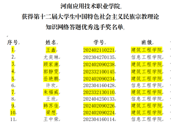 经学校认真评选与审定,我校第十二届大学生中国特色社会主义民族宗教理论知识竞赛的表彰结果现已正式公布。在本次竞赛中,各学院师生踊跃参与,展现出了扎实深厚的理论知识功底和积极向上的精神风貌,众多优秀集体和个人脱颖而出,成绩斐然。