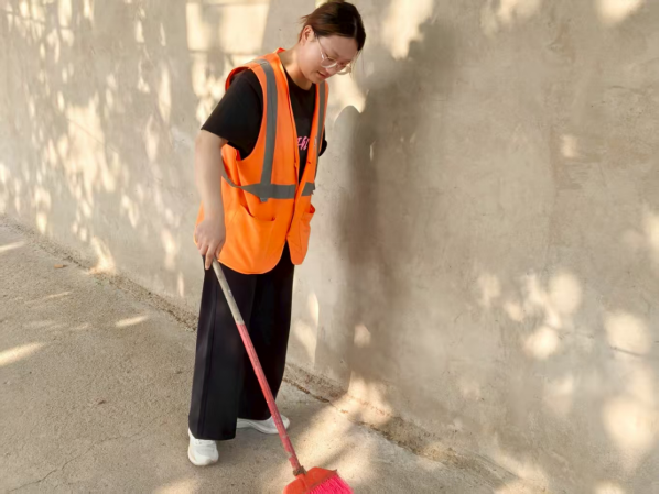 实践感悟:田静怡说:“在这个暑假,我积极投身家乡建设,参与了打扫村委院子、在实践中,我深刻体会到服务家乡的意义。拿起扫帚清扫街道时,才发现那些平时习以为常的角落,藏着不少被忽略的垃圾——墙角的塑料袋、路边的烟头等。弯腰捡拾的过程里,看着路面一点点变干净,心里竟有种莫名的成就感。以前总觉得“家乡整洁”是环卫工人的事,这次亲身体验才明白,维护环境从来不是某个人的责任,而是每个家乡人的事。