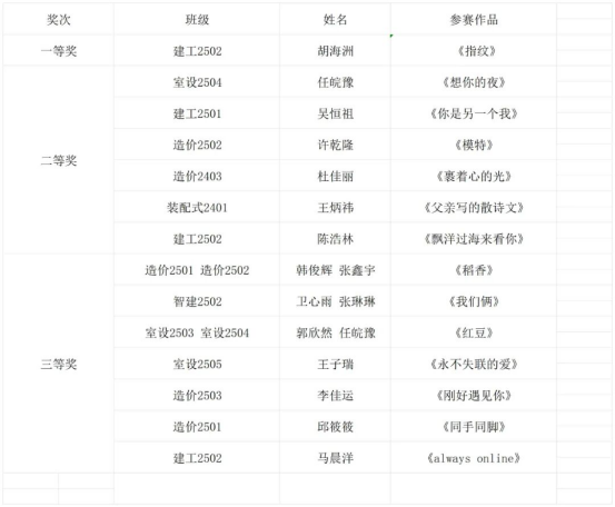 以下是本次活动获奖名单: